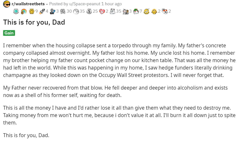 “你爸爸我拯救了GameStop,搞垮了整个股票市场,还叫那帮自私自利的混蛋富翁亏了好几百万!”