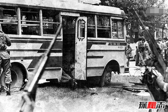 在绿地草丛中,警察有一人殉职,多人受伤。田以街心交通护栏为掩体,时而卧倒时而半蹲,准确射击,数十名武警竟一时无法靠前。恰在此时,一辆44路公共汽车驶来,如果司机冷静机智,以最大油门全速直冲,本可有惊无险。但哪个司机受过这种训练呢?被横飞的枪弹吓懵了的司机,竟然把车刹在了路中间,子弹成串地飞到车里,乘客纷纷倒在血泊之中。不少早晨上班的人是被从自行车上扫下来的,(死亡17人)。